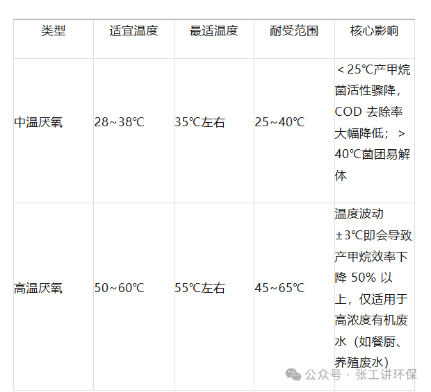 产甲烷菌(严格厌氧自养 / 兼性菌,耐受性极弱)、聚磷菌(释磷关键,兼性厌氧异养菌)温度控制